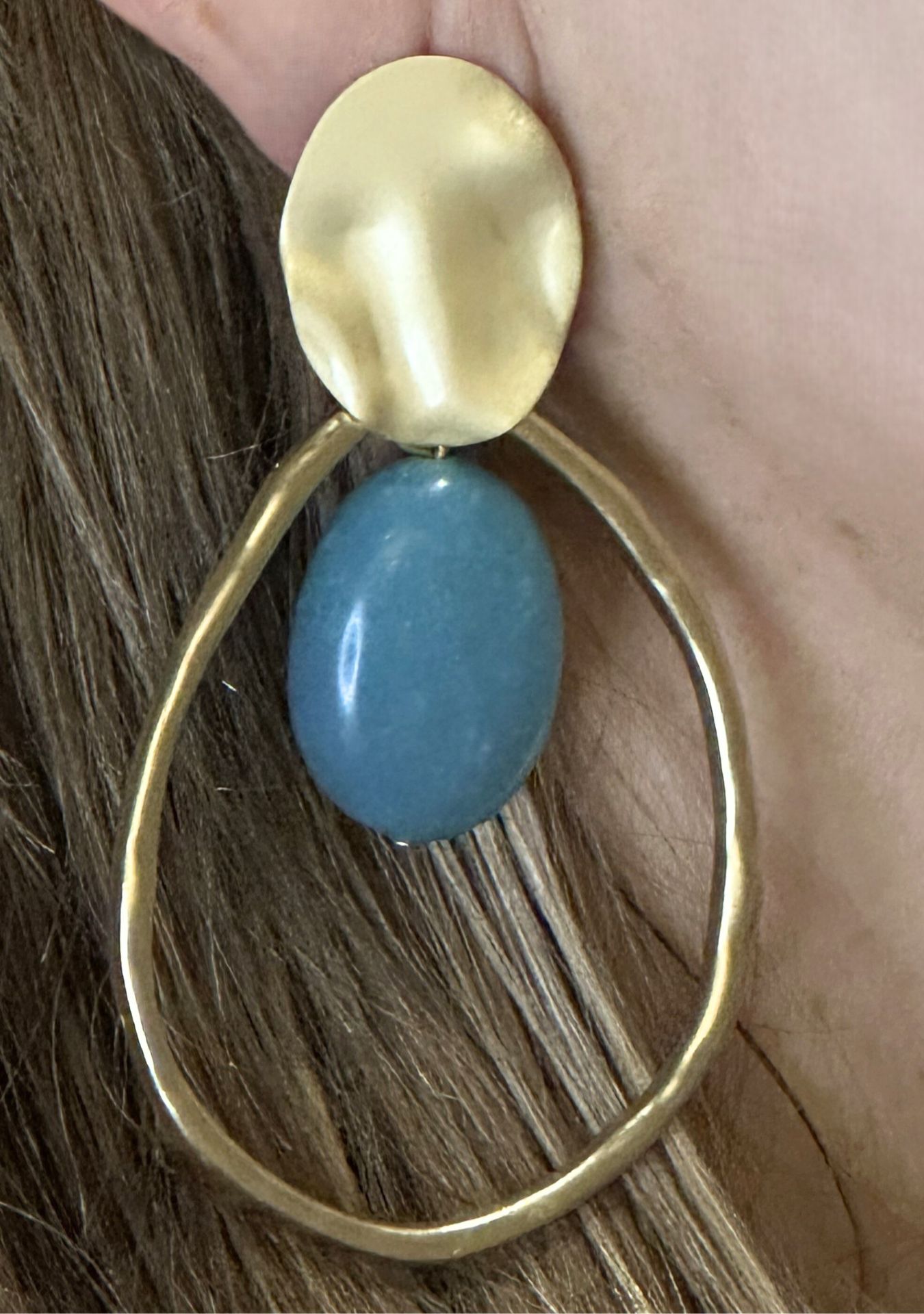 Pendientes en forma de lágrima con piedra verde azulada. Ligeros y elegantes para cualquier ocasión