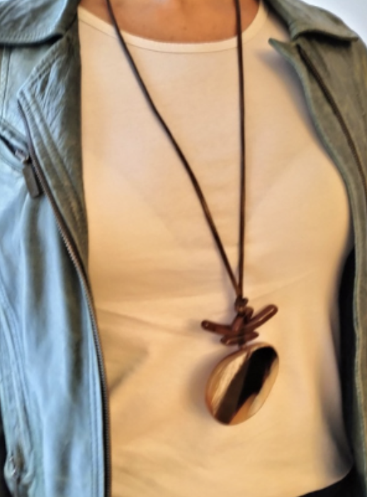 Collar largo con esfera de coco en tonos marrones. Un collar que eleva tu look a otro nivel.