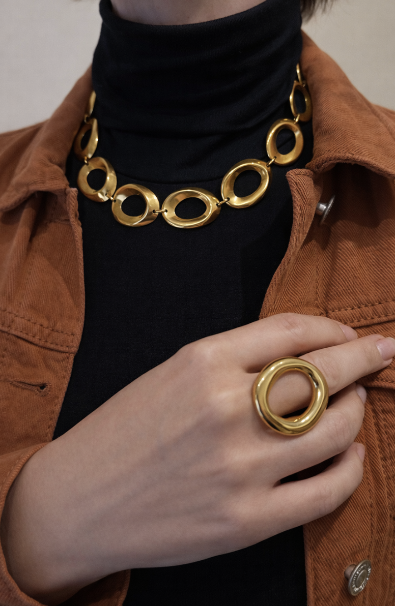 Anillo dorado, muy ligero y cómo de acero hipoalergénico, ideal para esos looks casuales.